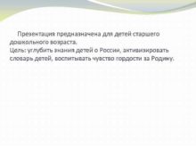 Презентация предназначена для детей старшего дошкольного возраста Цель