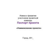 Имена и фамилии участников проектной команды Паспорт проекта