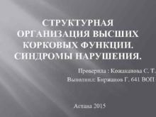 СТРУКТУРНАЯ ОРГАНИЗАЦИЯ ВЫСШИХ КОРКОВЫХ ФУНКЦИИ СИНДРОМЫ НАРУШЕНИЯ Проверила