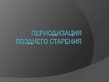 ПЕРИОДИЗАЦИЯ ПОЗДНЕГО СТАРЕНИЯ Возрастная периодизация второй половины