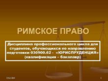 РИМСКОЕ ПРАВО Дисциплина профессионального цикла для студентов обучающихся