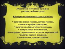 30 сентября состоялась проверка уголков учебных групп Критерии