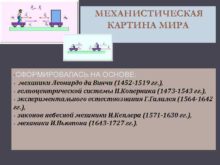 МЕХАНИСТИЧЕСКАЯ КАРТИНА МИРА СФОРМИРОВАЛАСЬ НА ОСНОВЕ механики