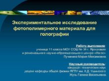 Экспериментальное исследование фотополимерного материала для голографии Работу выполнила