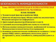 БЕЗОПАСНОСТЬ ЖИЗНЕДЕЯТЕЛЬНОСТИ Тема ФИЗИОЛОГИЧЕСКАЯ И ПСИХОЛОГИЧЕСКАЯ НАДЕЖНОСТЬ ЧЕЛОВЕКА