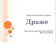 ЛЕКАРСТВЕННАЯ ФОРМА Драже Подготовила студентка группы ХТ-408 а