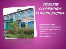 ПРОЕКТ ОСОЗНАННОЕ РОДИТЕЛЬСТВО Директора МОУ Павлиновская средняя общеобразовательная