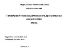 МЕДИЦИНСКИЙ УНИВЕРСИТЕТ АСТАНА Кафедра Неврологий Тема Хроническая ишемия