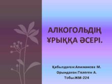 АЛКОГОЛЬДІҢ ҰРЫҚҚА ӘСЕРІ Қабылдаған Алиманова М Орындаған Төлеген