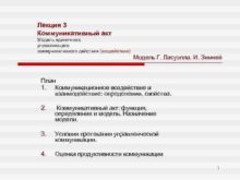 Лекция 3 Коммуникативный акт Модель единичного управляющего коммуникативного
