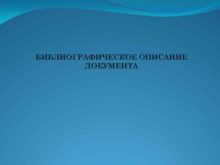 БИБЛИОГРАФИЧЕСКОЕ ОПИСАНИЕ ДОКУМЕНТА Структура библиографической записи