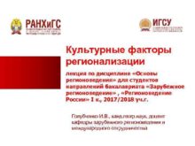 Культурные факторы регионализации лекция по дисциплине Основы регионоведения