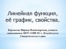 Линейная функция её график свойства Кирьянова Марина Владимировна