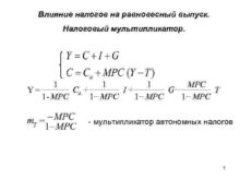 Влияние налогов на равновесный выпуск Налоговый мультипликатор Y