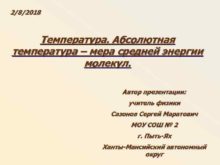 2 8 2018 Температура Абсолютная температура мера средней энергии