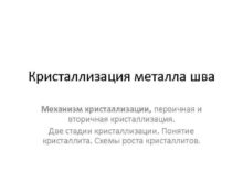 Кристаллизация металла шва Механизм кристаллизации первичная и вторичная