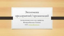 Экономика предприятий организаций Доктор экономических наук профессор Виктория Ивановна