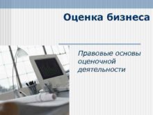 Оценка бизнеса Правовые основы оценочной деятельности ПОНЯТИЕ