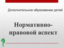 Дополнительное образование детей Нормативноправовой аспект Основные документы
