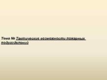 Тема Тактические возможности пожарных подразделений Тактические