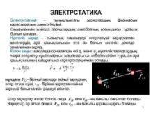 ЭЛЕКТРСТАТИКА Электрстатика тыныштықтағы зарядтардың физикасын қарастыратын электр