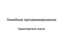 Линейное программирование Транспортная задача Оглавление 1 Математическая