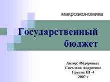 макроэкономика Государственный бюджет Автор Фёдоровых Светлана Андреевна Группа