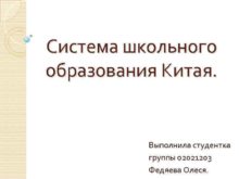 Система школьного образования Китая Выполнила студентка группы 02021203