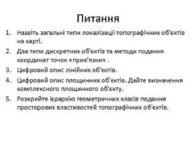 Питання 1 Назвіть загальні типи локалізації топографічних об єктів