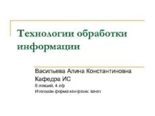 Технологии обработки информации Васильева Алина Константиновна Кафедра ИС