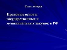 Тема лекции Правовые основы государственных и муниципальных закупок