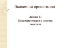 Экономика организации Лекция 13 Ценообразование и ценовая политика