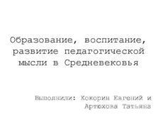 Образование воспитание развитие педагогической мысли в Средневековья Выполнили