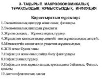 3 — ТАҚЫРЫП МАКРОЭКОНОМИКАЛЫҚ ТҰРАҚСЫЗДЫҚ ЖҰМЫССЫЗДЫҚ ИНФЛЯЦИЯ Қарастыратын