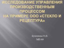 ИССЛЕДОВАНИЕ УПРАВЛЕНИЯ ПРОИЗВОДСТВЕННЫМ ПРОЦЕССОМ НА ПРИМЕРЕ ООО СТЕКЛО