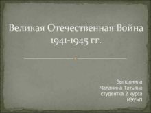 Великая Отечественная Война 1941 -1945 гг Выполнила Маланина