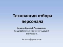 Технологии отбора персонала Кучеров Дмитрий Геннадьевич Кандидат экономических