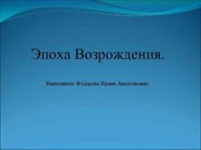 Эпоха Возрождения Выполнила Фёдорова Ирина Анатольевна Возрождение