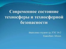 Современное состояние техносферы и техносферной безопасности Выполнил студент