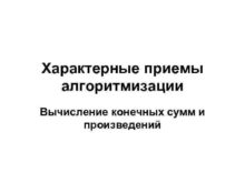 Характерные приемы алгоритмизации Вычисление конечных сумм и произведений