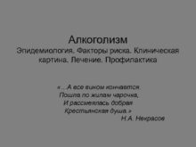 Алкоголизм Эпидемиология Факторы риска Клиническая картина Лечение Профилактика