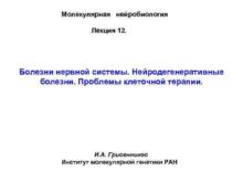 Молекулярная нейробиология Лекция 12 Болезни нервной системы Нейродегенеративные