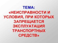 ТЕМА НЕИСПРАВНОСТИ И УСЛОВИЯ ПРИ КОТОРЫХ ЗАПРЕЩАЕТСЯ ЭКСПЛУАТАЦИЯ
