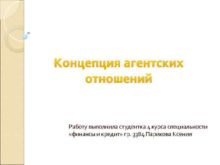 Концепция агентских отношений Работу выполнила студентка 4 курса