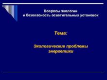 Вопросы экологии и безопасность осветительных установок Тема Экологические