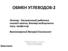 ОБМЕН УГЛЕВОДОВ-2 Лектор — Заслуженный работник высшей школы