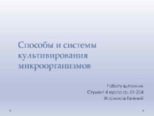 Способы и системы культивирования микроорганизмов Работу выполнил Студент