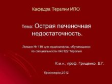 Кафедра Терапии ИПО Тема Острая печеночная недостаточность Лекция