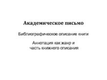 Академическое письмо Библиографическое описание книги Аннотация как жанр