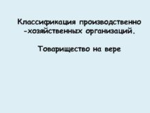 Классификация производственно -хозяйственных организаций Товарищество на вере